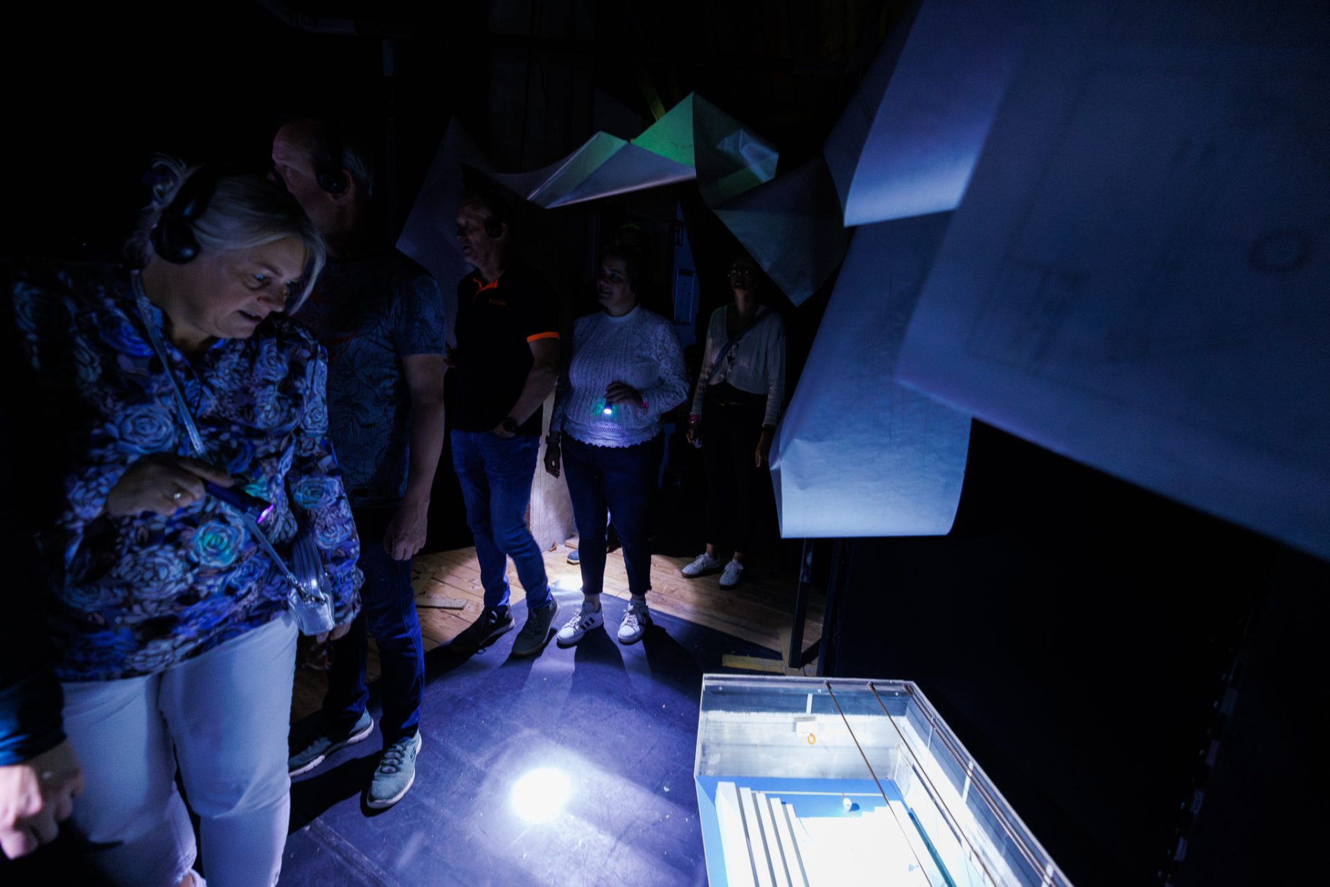 The route goes along (narrow) corridors, stairs and normally inaccessible areas in the theatre. If you have difficulty walking and/or use a walker or wheelchair, you can experience the route on a Sunday afternoon in Theater Sneek, Schouwburg De Harmonie in Leeuwarden or Schouwburg De Lawei in Drachten. There is then a time slot in which a lift is used and there is more time to complete the route. For more information, see the website of the relevant theatre.